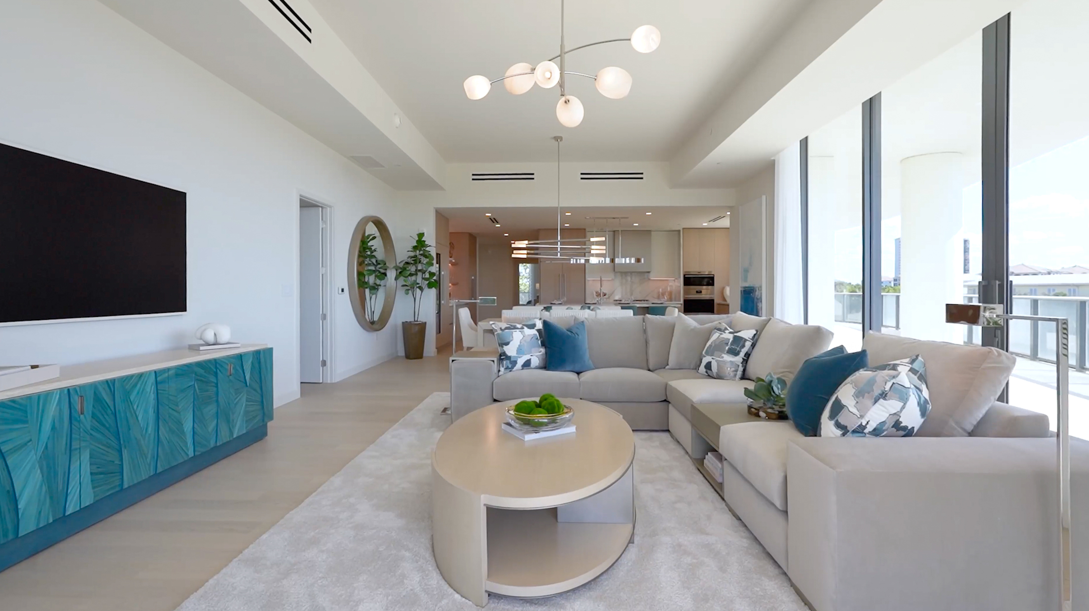 Elevated above the shimmering Gulf waters in the Mystique high-rise, a stunning private penthouse created by Romanza Interior Design illustrates the b...